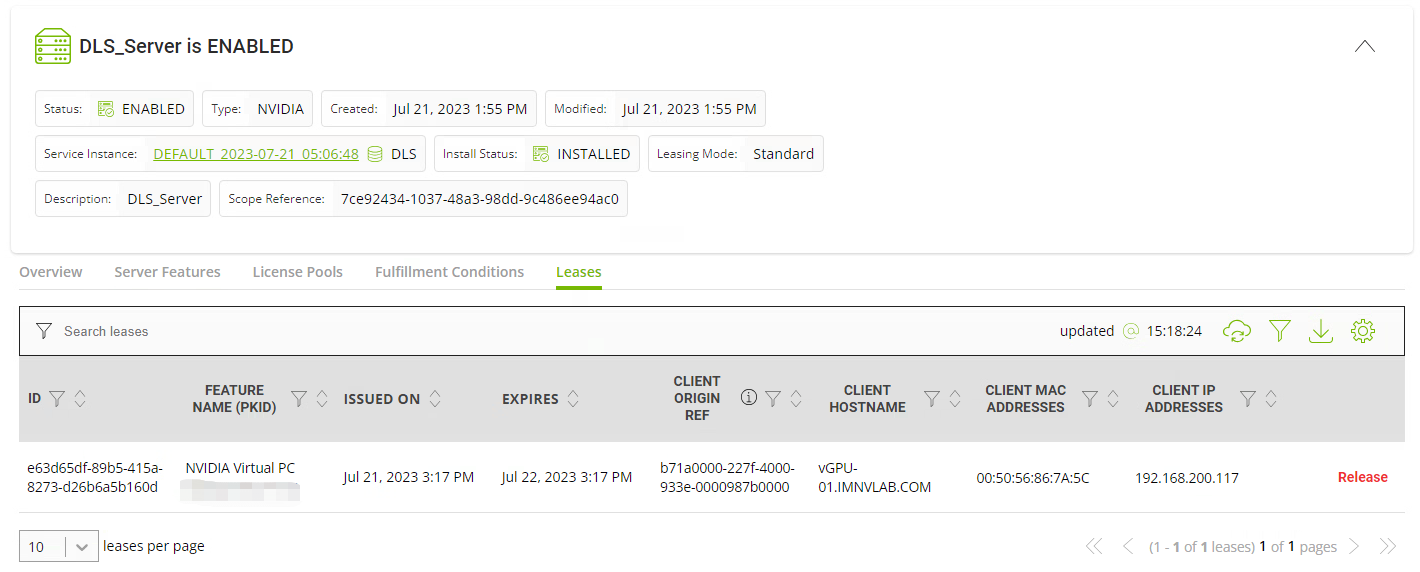 在Leases下可以查看更具体的虚拟机信息,一般虚拟机系统正常关机就会释放授权,特殊情况下也可以在这里手动释放授权