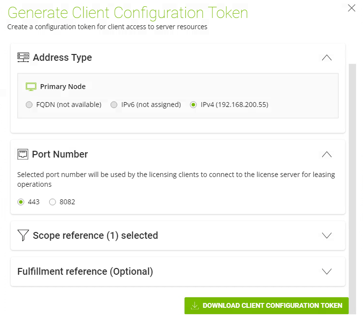 在弹出窗口中确认服务器IP和端口信息,请确保选上了正确的IP地址,在某些DHCP环境中可能会默认选中无效的FQDN,然后点击DOWNLOAD CLIENT CONFIGURATION TOKEN