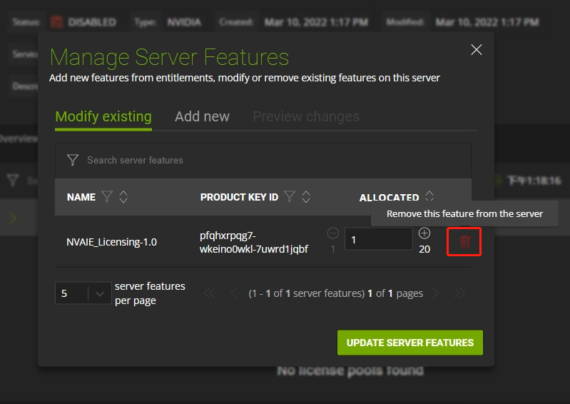 License全部移除以后,点击UPDATE SERVER FEATURES
